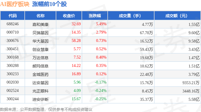 证券之星消息,5月14日AI医疗板块较上一交易日下跌0.39%,祥生PG电子通信医疗领跌。当日上证指数报收于3403.95,上涨0.86%。深证成指报收于10354.22,上涨0.64%。AI医疗板块个股涨跌见下表: