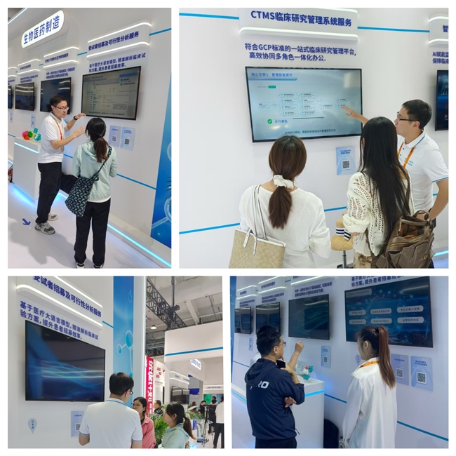 在服贸会展区,医渡科技“CTMS临床研究管理系统”与“智能临床试验受试者招募与可行性分析平台”同步亮相,吸引了众多与会者驻足交流、深入咨询。