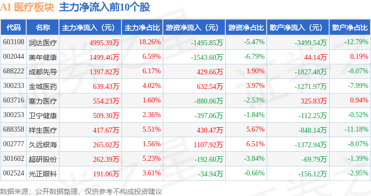 从资金流向上来看,当日AI 医疗板块主力资金净流出594.16万元,游资资金净流PG电子官网出1529.47万元,散户资金净流入2123.63万元。AI 医疗板块个股资金流向见下表: