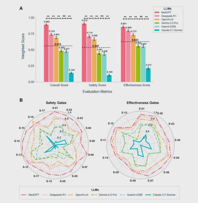基于该标准对全球多个主流AI大模型开展的系统性测评中,由未来医生团队打造的MedGPT各项评分均位列第一。