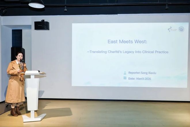 签约仪式后,省科协同步举办研修分享会,血液病科副主任医师宋晓露作为赴夏洛特临床进修的医务人员代表登台分享。她结合自身进修经历,深入介绍了柏林夏洛特医科大学标准化的诊疗章程、严谨医疗体系背后的人文关怀,以及倡导终身学习的医院文化,同时分享了所学知识与技术在本院临床工作中的落地应用成果,让与会者对中德医疗合作的实践价值有了更直观的体会。分享会由我院国际交流与对外联络部周忆瑜主持。