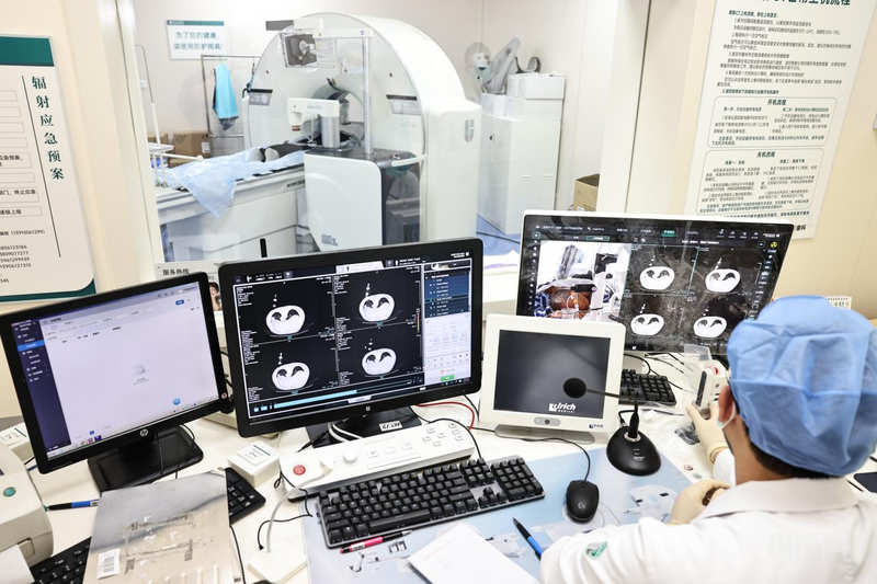 医生正在使用经皮穿刺手术机器人为患者完成穿刺活检(央广网发 常州市第一人民医院供图)