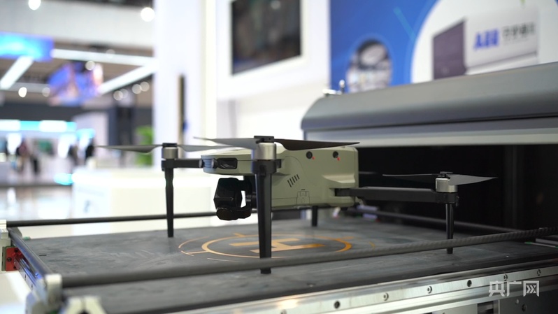 往届全球数贸会现场展示的无人机产品及“智能机库”(央广网记者 杨正弘 摄)