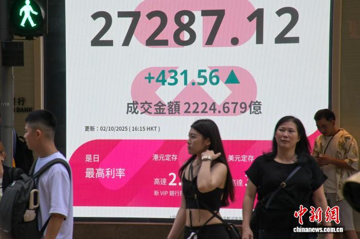 10月2日,香港恒生指数收市报27287.12点,上升431.PG电子官方平台入口56点,升幅为1.61%,全日成交金额为2224.68亿港元。中新社记者陈永诺摄