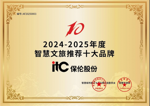 中国文旅产业十大服务品牌厂商!itc保伦股份荣获“2024-2025年度智慧文旅推荐十大品牌”奖项