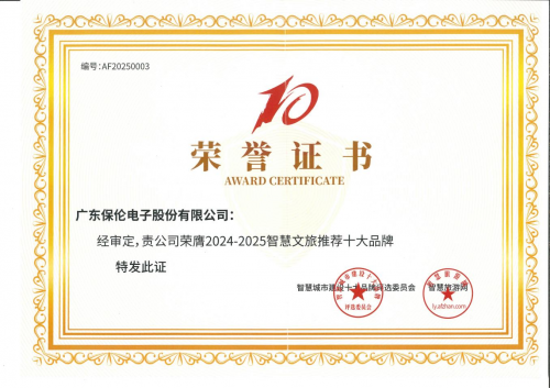 会、安防展览网、智慧旅游网、智慧医疗网联合主办的“2024-2025年度智慧城市十大推荐品牌”评选榜单重磅揭晓。其中,广东保伦电子股份有限公司(简称“itc保伦股份”)凭借在智慧文旅领域的深厚积淀与卓越服务,成功斩获“2024-2025年度智慧文旅推荐十大品牌”奖项。