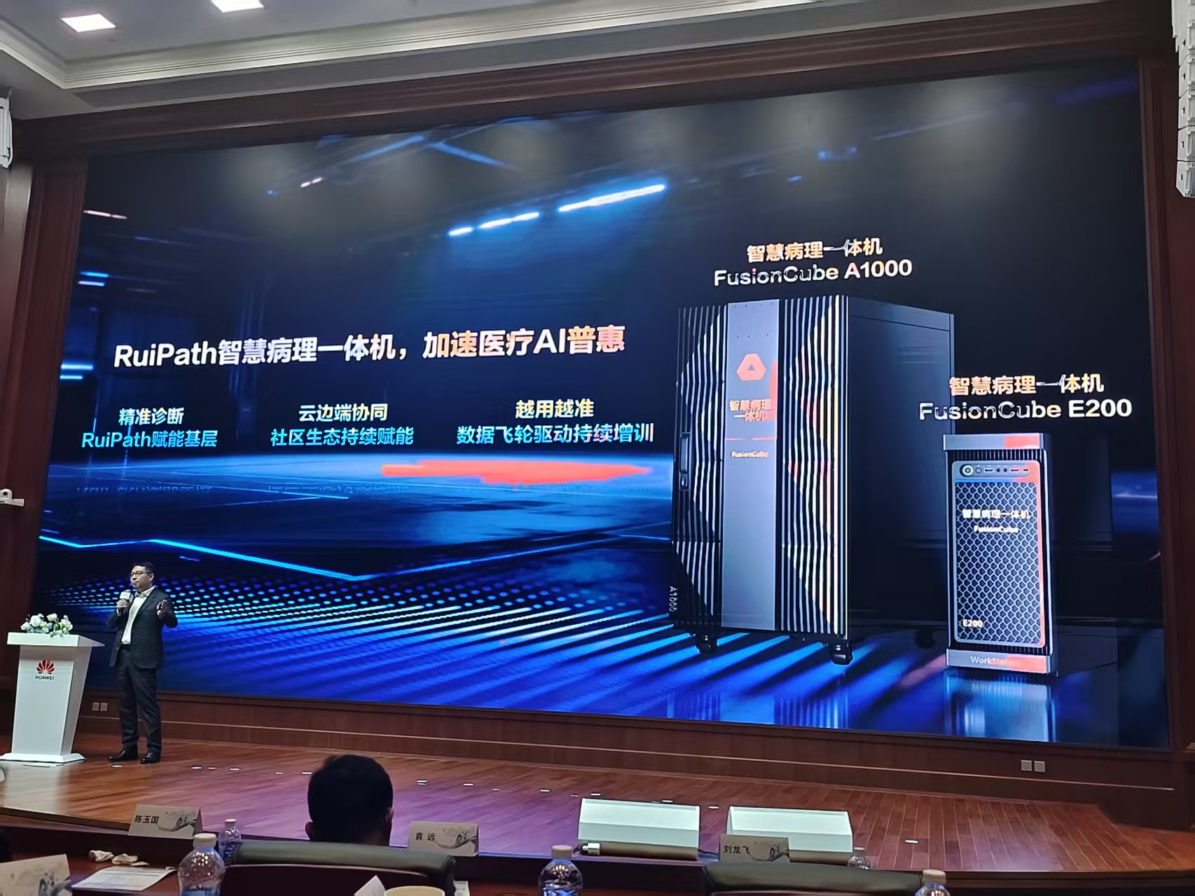 2月1日上午,在医疗人工智能协同创新论坛暨医疗人工智能联盟(筹)2026年第一次学术会议上,华为推出了“行业AI梦工厂”智慧医疗专区,并与上海交通大学医学院附属瑞金医院(下称“瑞金医院”)联合发布RuiPath智慧病理一体机——FusionCube A1000、FusionCube E200,致力于帮助基层医院快速部署AI病理模型,推动医疗资源均衡化。