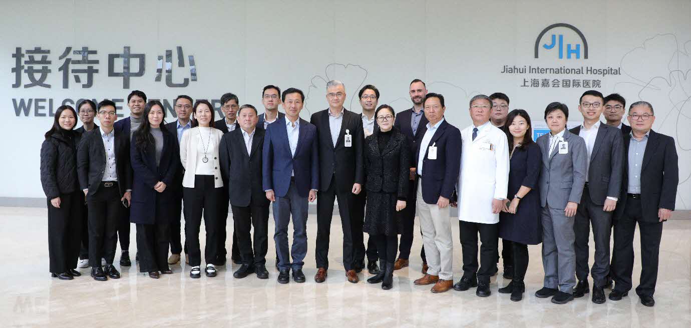 嘉会医疗管理执行委员会主席项乃强医生(右2)、嘉会医疗Corporate Leader管红艳女士(右1)、上海嘉会国际医院院长吴海山教授(右3)及医疗副院长陈鹏医生(左3)